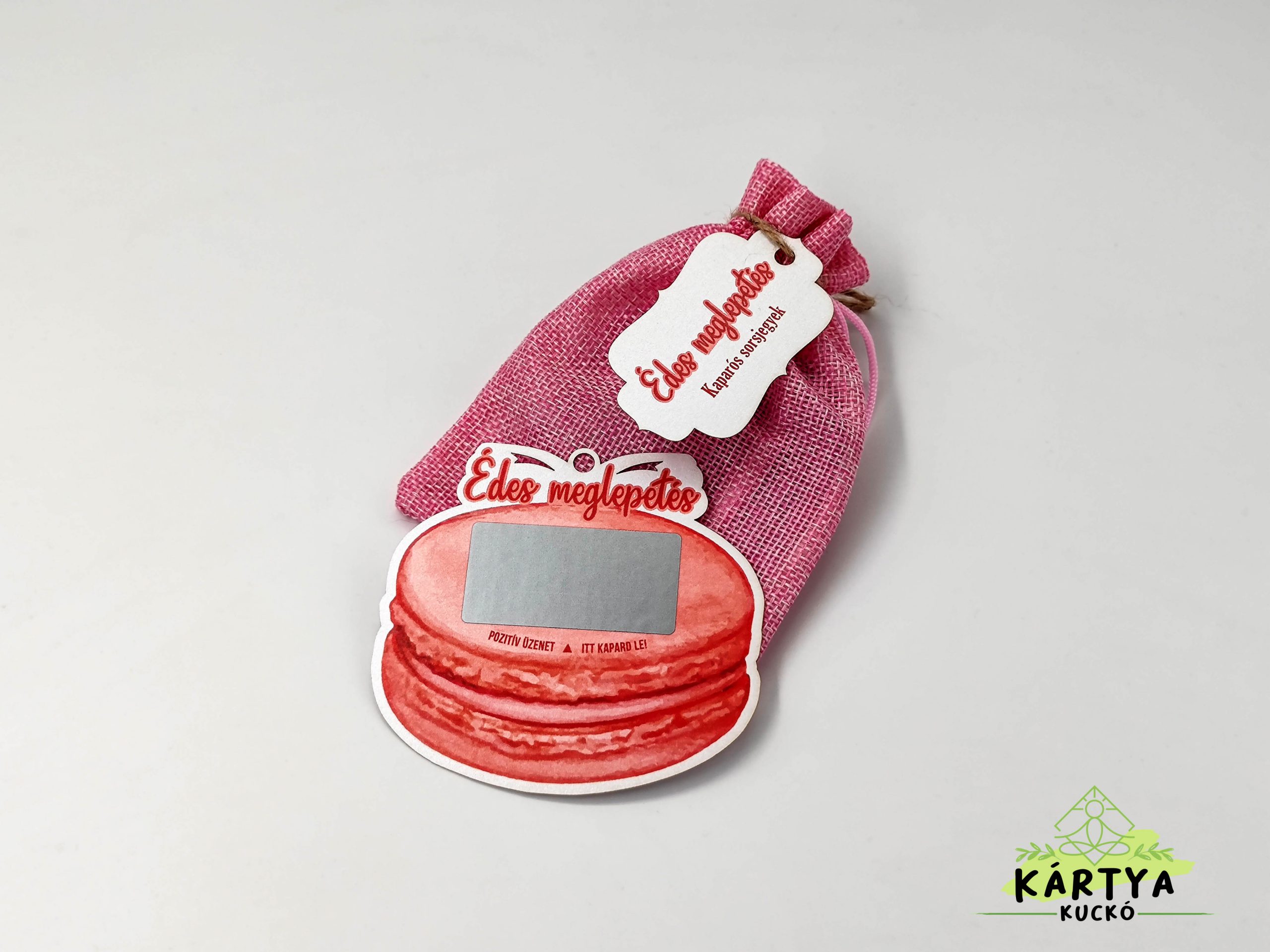 Édes meglepetés kaparós sorsjegyek – 6 színes macaron formájú kedvesség